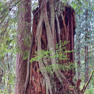 And we couldn’t help but notice their fallen friends beneath, now hosting trees already far older than me. Stumps from long ago became home to huckleberries and even hemlocks.